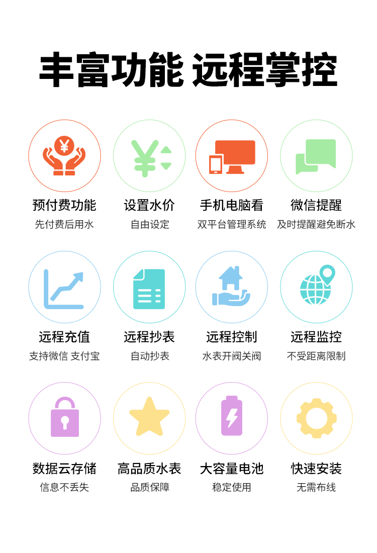 浙江智電儀器儀表的智能水電表遠程管理系統可以完成遠程抄表都能夠對于這種問題一一處理,不但可以完成遠程抄表,還能夠完成預付費/后付費功能(適用微信、支付寶等繳費方式)、遠程控制停水,關閉電源、階梯水電價、預警信息提醒這些,功能齊全。而在運用上也簡易便捷,客戶只需要借助智能手機APP或是pc端就可以操作,足不出門就可以交水費,十分便捷。
